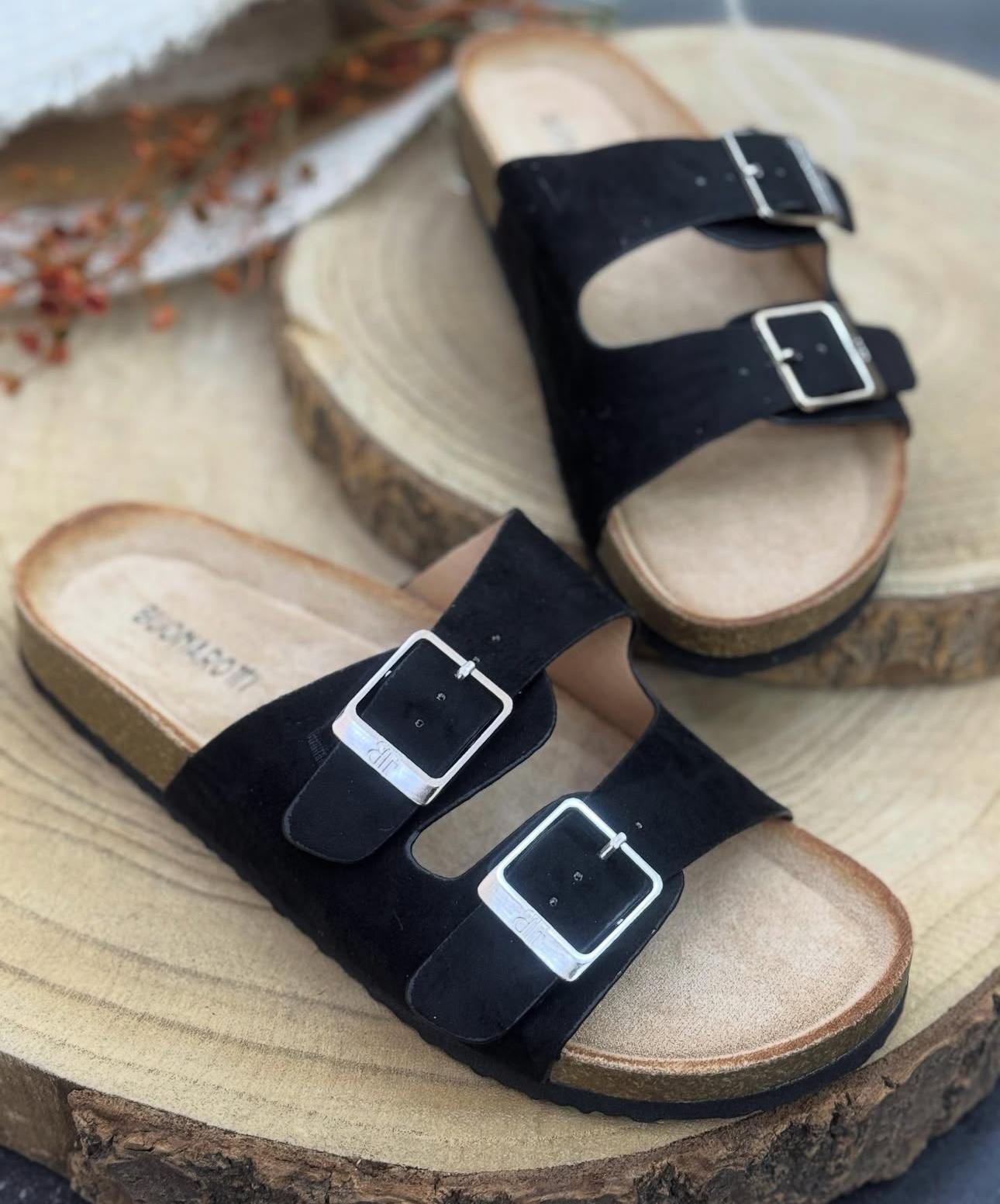 Sandalias clásicas y cómodas con doble hebilla metálica ajustable, plantilla ergonómica y suela ligera. El complemento ideal para un look casual y relajado.